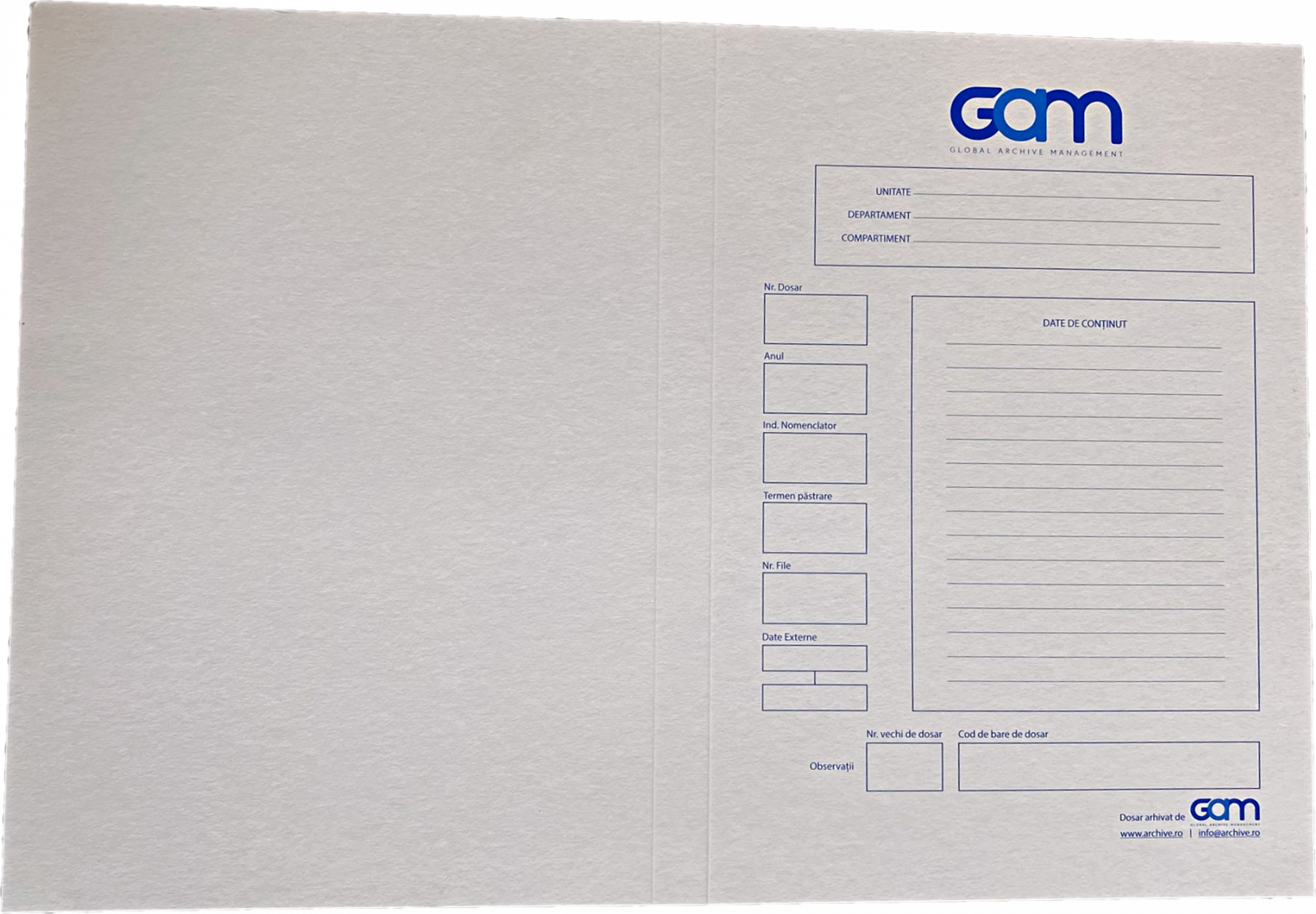 Este utilizată pentru arhivarea documentelor. Coperta GAM dispune de următoarele rubrici de completare: