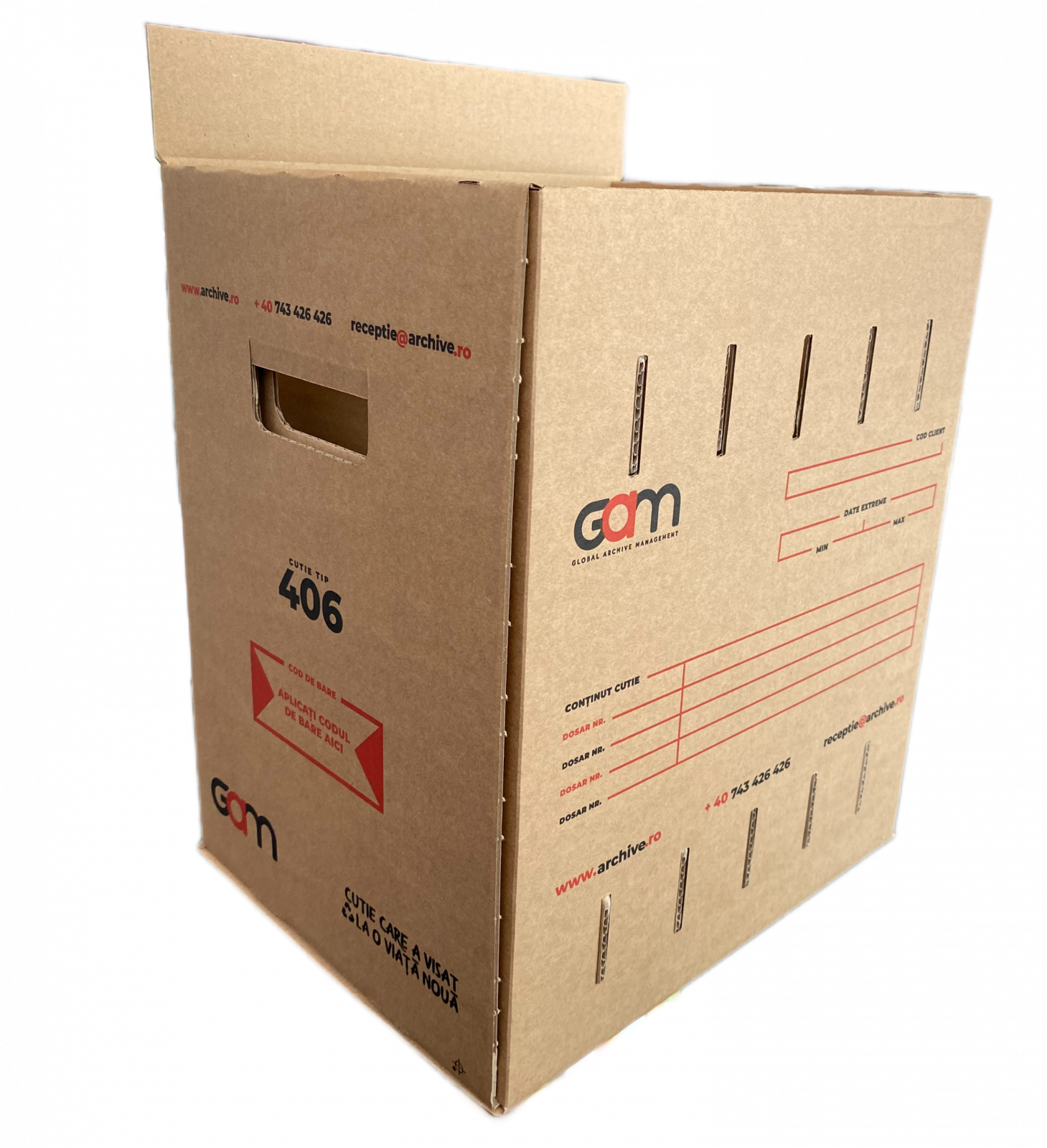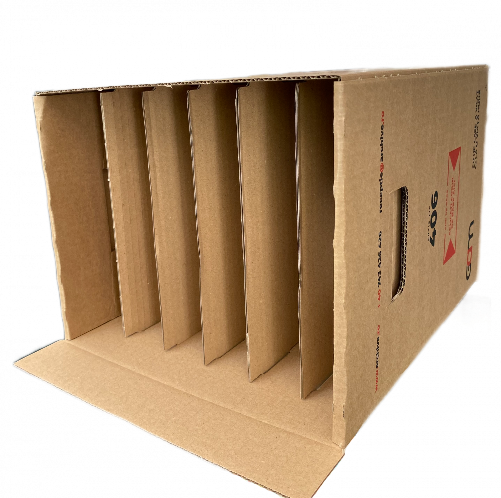 Cutia tip 406 este soluția dumneavoastră pentru arhivarea documentelor la raft, fiind realizată din carton ondulat durabil.